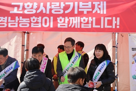 이날 경기관람에 앞서 NH농협은행 조청래 경남본부장과 임직원들은 고향사랑기부제 및 경남농산물 홍보부스를 운영했다.