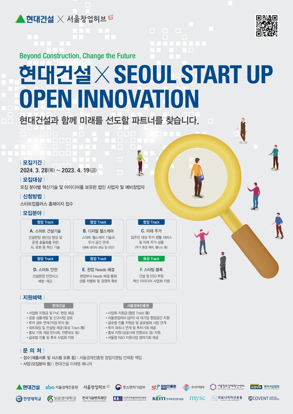 현대건설이 혁신 스타트업 발굴 및 육성을 위해 서울경제진흥원과 함께 ‘2024 현대건설 x Seoul Startup Open Innovation(서울 스타트업 오픈 이노베이션)’ 공모전을 개최한다고 28일 밝혔다.