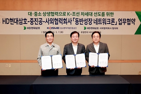 중소벤처기업진흥공단(중진공)은 7일 HD현대삼호, HD현대삼호 사외협력회사 협의회와 ‘K-조선 차세대 선도를 위한 대·중소 동반성장 네트워크론 업무협약’을 체결했다고 밝혔다.