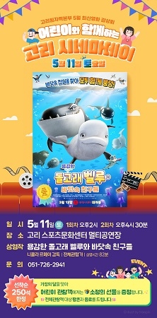 한국수력원자력 고리원자력본부는 오는 11일 부산시 기장군 장안읍 고리스포츠문화센터 멀티공연장에서 가정의 달 특집 ‘어린이와 함께하는 고리 시네마데이’를 시행한다고 밝혔다.