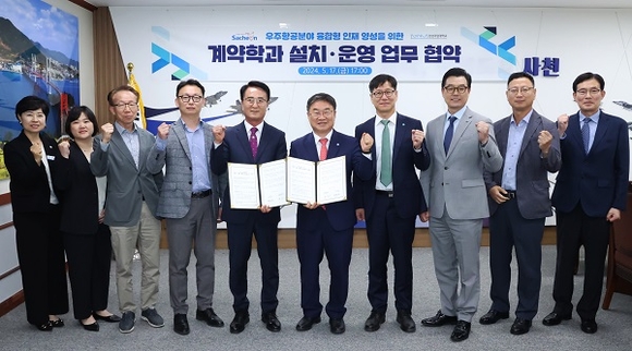 경상국립대학교와 사천시는 지난 17일 사천시청 시장실에서 우주항공 분야 융합형 기술경영인재를 양성하기 위해 ‘사천GNU사이언스파크 계약학과 설치·운영을 위한 업무협약’을 체결했다고 20일 밝혔다.