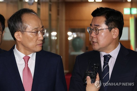 국민의힘 추 원내대표도 이 자리에서 “집권여당으로서 지금 우리 민생 상황이 엄중하기 때문에 민생 국감을 지향하면서 집중적으로 각종 민생관련 이슈를 점검하고 건설적인 대안을 모색하는 국감이 되도록 할 예정”이라고 강조하면서도 “야당의 부당한 정쟁적인 정치 공세에 대해서는 강하게 맞서 대응하겠다”고 강조했다.