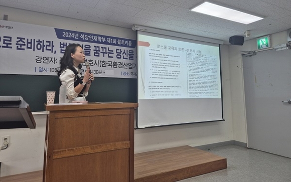석당인재학부는 ‘토론으로 준비하라-법조인을 꿈꾸는 당신을 위한 특별한 레시피’라는 주제로 한국환경산업기술원 장은진 변호사를 초청해 2024학년도 석당인재 콜로키움을 진행했다.