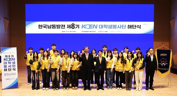 한국남동발전은 지난 21일 진주 본사 대강당에서 강호선 동반상생처장, 김지수 경남사회복지협의회 부회장과 대학생봉사단 등 30여 명이 참석한 가운데 ‘제8기 KOEN 대학생봉사단 해단식’을 가졌다고 25일 밝혔다.