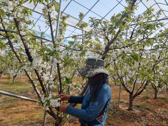 이번 사업은 ‘체리 인공수분 시범사업’으로 총 1,500만원의 예산이 투입돼 8농가에서 사업을 추진, 약 3ha의 농장에 인공수분을 실시했다.