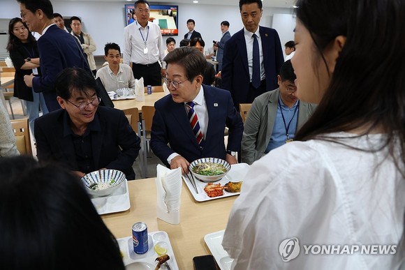10일 이재명 대통령은 시진핑 중국 주석과의 첫 정상 통화를 마친 뒤 바로 청사 지하 1층 구내식당으로 내려가 식사를 한 뒤 조리실까지 찾아들어가 조리 담당 직원들과 따뜻한 인사를 나눴다.