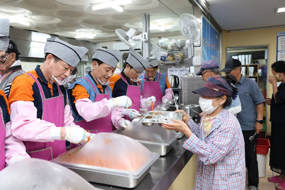 포항제철소는 이날 오전 송도동과 해도동의 무료 급식소에서 추석맞이 배식 봉사를 실시했다. 포항제철소 소장단을 비롯한 정비사업회사 및 파트너사 대표 등이 참석해 어르신들에게 따뜻한 식사를 제공했다.