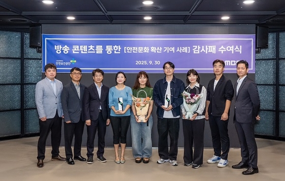 한국산업안전보건공단은 지난달 30일 MBC 상암 신사옥에서 드라마 및 예능 프로그램 제작진을 대상으로 이사장 명의 감사패를 수여했다고 1일 밝혔다.