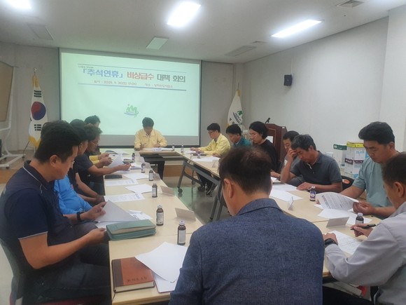 (CNB뉴스=신규성 기자) 경북 성주군 상하수도사업소에서는 지난달 30일 관련 공무원, 상수도 급수공사 대행업체 대표자 등 20여 명이 참석한 가운데 2025년 추석 연휴 대비 급수대책 연석회의를 개최했다.
