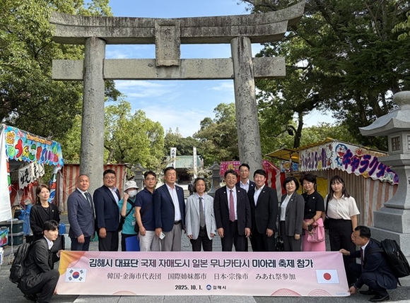 경남 김해시는 국제자매도시인 일본 무나카타시의 공식 초청을 받아 지난 29일부터 1일까지 방문단을 파견했다. 방문단은 무나카타시의 대표 축제인 '미아레 축제'에 맞춰 시장과 시의장, 시의원, 공무원 등 총 15명으로 구성됐다.