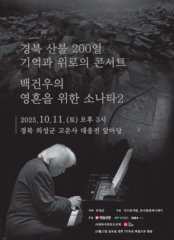 (CNB뉴스=신규성 기자) 의성군은 경북 산불 발생 200일을 맞아 세계적인 피아니스트 백건우의 위로 연주회가 오는 11일 토요일 오후 3시, 의성군 천년고찰 고운사에서 열린다고 밝혔다.