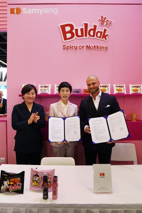 ‘불닭 스파이시 클럽’을 콘셉트로 구성한 삼양식품 부스를 찾은 김정수 부회장은 현장을 살피고, 글로벌 식품외식산업 관계자들과 소통하며 홍보에 힘을 실었다. 또한 프랑스 대형채널 유통전문업체 ‘SRG 인터내셔널’사와 프랑스 현지 유통에 관한 MOU를 체결해 유럽시장 진출 가속화의 발판을 마련했다.