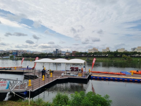 (CNB뉴스=신규성 기자) 대구시는 금호강 르네상스 프로젝트의 대표 사업인 ‘금호강 수상레저시설’을 아양교에서 공항교 인근 약 800m 구간에 설치하고 오는 11일부터 다음달 30일까지 시범 운영에 들어간다.