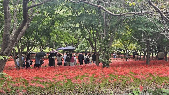 지난해 축제는 폭염과 가뭄으로 상사화 개화가 늦어져 방문객 수가 24만여 명에 그쳤으나, 올해 축제 기간 중에는 상사화꽃이 절정에 이르러 자체 집계 결과, 총 38만여 명의 관광객이 방문하여 가을을 대표 꽃 축제로서의 명성을 다시 한번 입증했다.