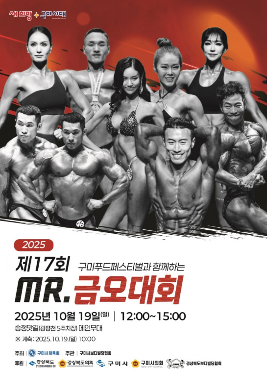 김장호 구미시장은 “미스터 금오대회는 선수들의 열정이 빛나는 무대이자 시민 모두가 즐길 수 있는 건강한 축제”라며 “앞으로 스포츠와 문화가 어우러진 다양한 프로그램으로 시민들에게 활력을 전하겠다”고 말했다.