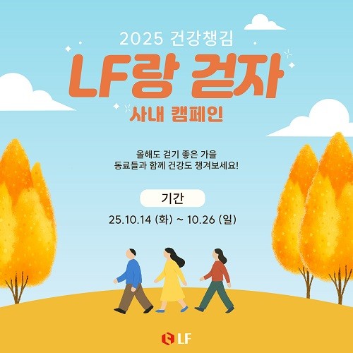 LF가 오는 26일까지 임직원의 건강 증진과 소통 활성화를 목적으로 한 사내 건강 증진 캠페인 ‘2025 LF랑 걷자’를 진행한다고 14일 밝혔다.