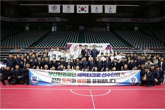 이날 경기장에는 부산환경공단 임직원 200여 명이 응원단을 꾸려 사직실내체육관을 가득 메우며 선수단에 힘을 보탰다. 현장을 찾아 직접 응원한 이근희 이사장은 “세팍타크로가 아직 비인기 종목이라 전용 연습장이 없고 훈련 여건도 열악하지만, 어려운 환경 속에서도 최선을 다해 훈련해 온 선수들의 노력에 진심으로 감사드린다”고 격려했다.