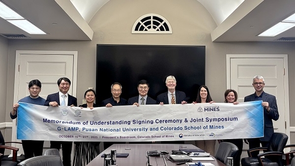 부산대학교 G-LAMP 사업단(Global-Learning & Academic Research Institution for Master’s·PhD Students, and Postdocs, G-LAMP)은 미국 콜로라도광업대학(Colorado School of Mines, CMS)과 지질 수소(Geologic Hydrogen) 및 지질환경 연구 협력 강화를 위한 업무협약(MoU)을 지난 20일 미국 콜로라도주 CMS 골든캠퍼스의 구겐하임홀에서 체결했다고 21일 밝혔다.