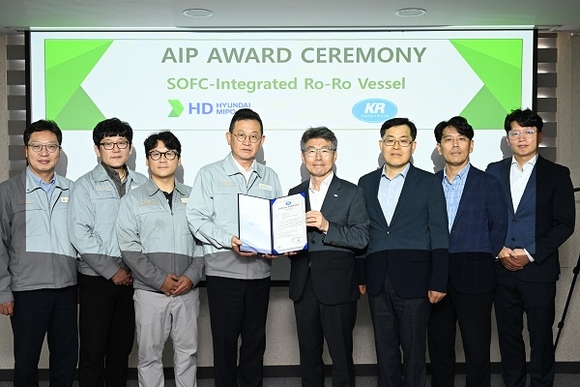 한국선급(KR)이 HD현대미포와 공동으로 개발한 고체산화물 연료전지(SOFC, Solid Oxide Fuel Cell) 통합 하이브리드 로로(Ro-Ro)선박 설계에 대해 개념승인(AIP, Approval In Principle)을 수여했다고 21일 밝혔다.