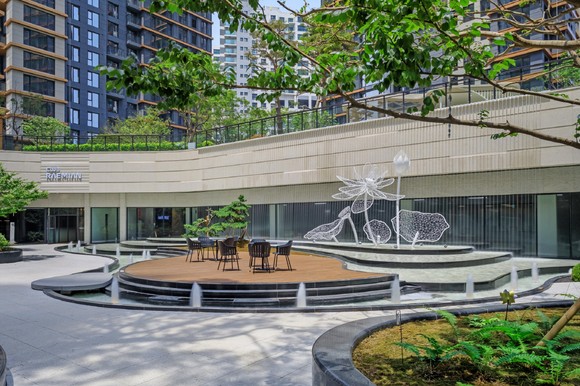 먼저 선큰정원을 조성해 한강 바람을 피할 수 있고, 동시에 안락한 휴게정원을 조성했다. 여기에 다양한 커뮤니티 시설을 배치해 쾌적한 공간 제공과 입주민 편의성을 높였다. 추가로 선큰이라는 음지의 생태 환경을 고려한 녹지공간과 청량한 수경시설, 침수 방지 배수 설계로 입주민 만을 위한 쾌적하고 아늑한 공간을 마련했다. 선큰은 지표면 아래에 조성된, 천장이 없는 개방된 지하 공간이다.
