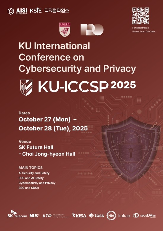 고려대학교 정보보호대학원이 고려대 개교 120주년을 맞아 오는 10월 27~28일 SK미래관 최종현홀에서 사이버보안 국제 학술대회 ‘KU International Conference on Cybersecurity and Privacy 2025(이하 KU-ICCSP 2025)’를 개최한다고 21일 밝혔다.