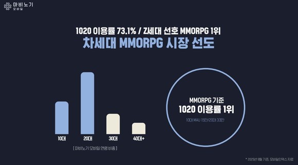 강민철 사업실장은 “1020세대로 대표되는 Z세대의 게임 이용률이 70%를 넘었고 내부 지표들에서도 Z세대가 선호하는 MMORPG 타이틀 1위를 차지했다”며 “마비노기 모바일은 세대 확장 측면에서 약세를 보인던 기존 국내 MMORPG 시장의 새로운 기회를 제시하고 새로운 시장을 개척했다”고 말했다.