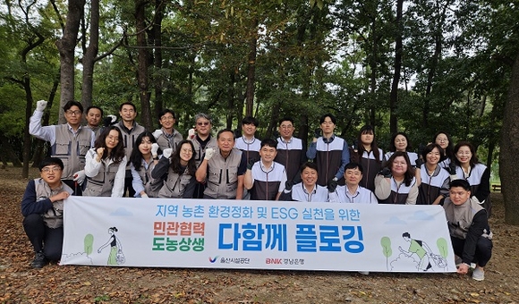 울산시설공단은 지난 21일 울주군 범서읍 일대에서 BNK경남은행과 협력해 ‘도농상생 다함께 플로깅’ 행사를 실시했다고 22일 밝혔다.
