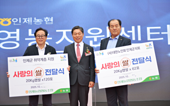 인제농협(정성빈 조합장)은 22일 영농지원센터에서 센터 준공식 때 받은 쌀화환으로 인제군과 대한노인회 인제군지회에 햅쌀 182포대를 전달했다.