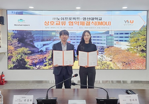 와이즈유 영산대학교 부산RISE사업단은 ㈜노쉬프로젝트와 지역 문화·관광 산업 활성화 및 미래 인재 육성을 위한 산학 업무협약을 체결했다고 23일 밝혔다.