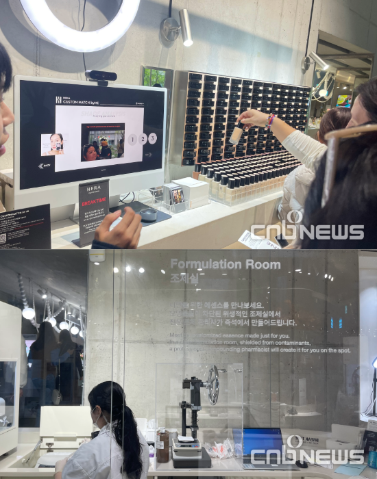 고객 맞춤형 제품을 제작하는 공간도 있었다. 헤라는 ‘나만의 파운데이션 만들기’ 코너를 조성했다. 장치 위 부착된 카메라가 관람객의 피부톤을 측정하면 그와 맞는 쿠션 등이 제작된다.