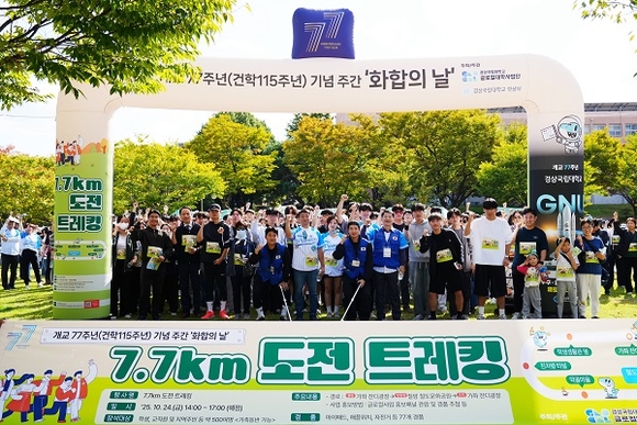 경상국립대는 개교 77주년 기념행사의 하나로 마련한 ‘7.7km 도전 트레킹’ 행사를 학생·교직원·동문·지역주민 830여 명이 참가한 가운데 성대하게 개최했다고 27일 밝혔다.