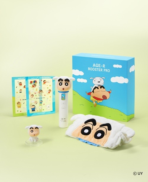 메디큐브 에이지알의 뷰티 디바이스 ‘부스터 프로’와 ‘부스터 프로 미니 플러스’ 역시 짱구 캐릭터 디자인을 적용한 한정판으로 새롭게 출시된다.‘부스터 프로’의 헤드케이스와 본체, 패키지 전반에 짱구 일러스트를 입혔으며, 구매 시 짱구 스티커 2종, 흰둥이 옷을 입은 짱구 피규어, 짱구 세안 밴드가 포함된 특별 구성이 함께 제공된다.
