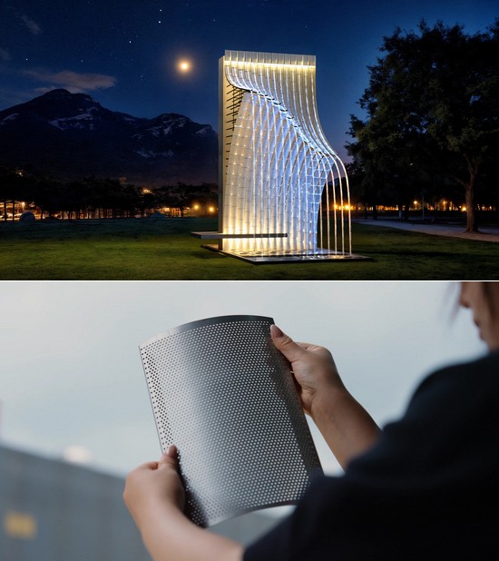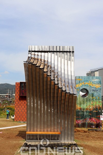 북악산을 등진 금속 물체가 가을볕에 산란한다. 기와가 서로 바투 옆구리를 맞댄 형상이다. 인위적으로 흐르는 물은 처마를 타고 한곳에 떨어진다. 자신들의 발끝이다. 고도로 계산된 것처럼 정확한 간격을 유지한 채 물줄기가 흐른다. 분명 작품이나 공학적 설계가 두드러지는 데에는 이유가 있다. 제작자가 현대자동차그룹 디자이너들이기 때문이다.