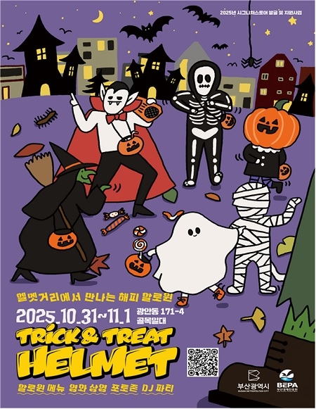 31일부터 11월 1일까지는 수영구 수영로554번가길 일원에서 ‘헬멧거리에서 만나는 해피 핼러윈’이 열린다. 광안리 인근 골목에 자리한 브런치 카페 ‘헬멧’은 유네스코 영화창의도시의 ‘우리동네시네마’ 상영관으로 활용되는 복합문화공간으로, 나이키 등 브랜드 팝업스토어와 협업 행사를 진행하며 젊은 층의 발길을 끌고 있다.