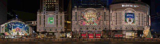 본점과 잠실점 외벽엔 총 3만 개의 LED 조명을 활용한 ‘롯데타운 크리스마스 파사드’가 펼쳐진다. 특히, 본점은 기존 본관에만 설치하던 조명 라이팅 연출을 에비뉴엘까지 확장했다. 영플라자 외벽에도 나탈리 레테의 작품과 형형색색의 다채로운 조명을 더했다.