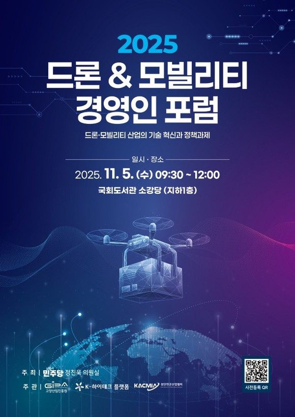 고양산업진흥원 K-하이테크플랫폼지원단은 오는 11월 5일 국회도서관 소강당에서 ‘2025 드론 & 모빌리티 경영인 포럼’을 개최한다고 밝혔다.