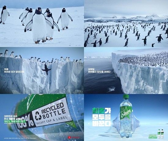 롯데칠성음료가 재생 플라스틱 원료를 100% 사용한 기계적 재활용 페트(MR-PET) 칠성사이다 제품의 두 번째 광고 ‘펭귄 편’을 선보인다고 31일 밝혔다.