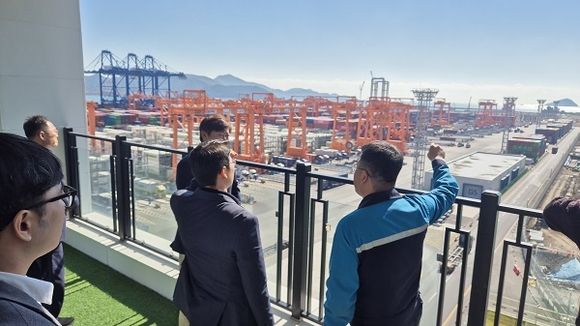 29일은 진해 와성지구 개발사업 현장 및 입주기업인 동원글로벌터미널을 확인했다. 와성지구는 산업·물류 복합단지로 조성 중이며, 2027년 준공을 목표로 사업 추진 중이다. 동원글로벌터미널은 국내 최초 부두 자동화 전구간을 도입한 첨단 컨테이너 부두로, 2024년 4월 개장 후 연간 195만 TEU 처리 규모를 갖췄다.