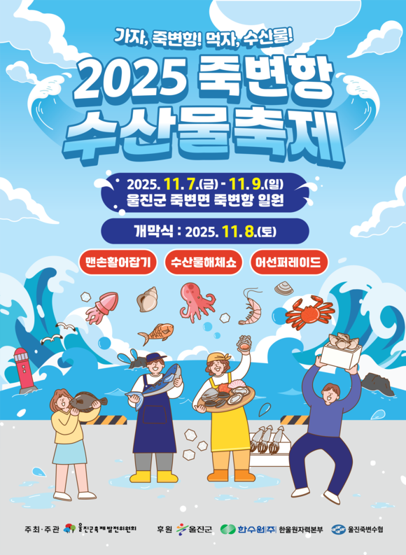 ‘죽변항 수산물 축제’는 청정 동해에서 갓 잡은 문어, 방어, 붉은대게, 오징어, 광어, 소라, 백골뱅이 등 제철 수산물을 마음껏 즐길 수 있는 미식 축제다.