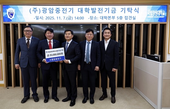 국립창원대학교는 7일 대학본부에서 ‘㈜광암중전기 대학발전기금 기탁식’을 개최했다고 밝혔다.