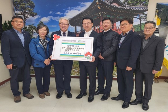 사회복지법인 작은공&사단법인 해피기버(이사장 권태일)는 지난 7일 인제군청을 방문해 지역내 취약계층의 따뜻한 겨울 나기를 위해 써달라며 1000만원 상당의 김치 200박스(8kg)와 난방용 전기장판 50개를 현물 기탁했다.