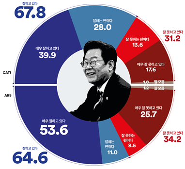 여론조사꽃의 조사에서도 대통령 국정수행에 대한 긍정 평가가 64.6%로 직전 주보다 2.1%p 상승했으며, 부정 평가는 34.2%로 1.3%p↓ 하락해 긍-부정 격차가 30.4%p로 확대됐다.