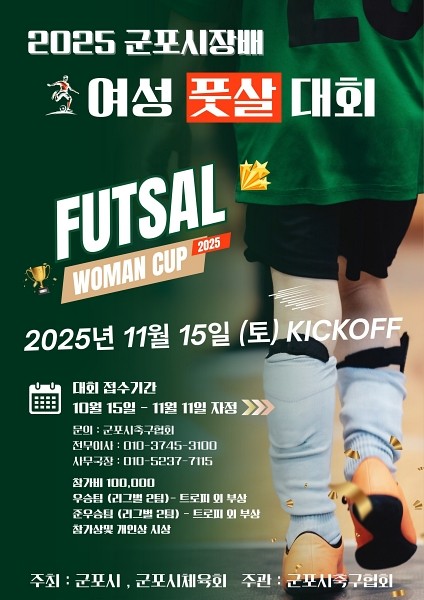 이번 대회는 군포 지역 여성 풋살팀과 인근 지역 우수팀 등 총 16개 팀이 참가해 보다 다양한 경기와 대진이 펼쳐질 전망이다.