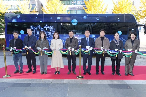 ‘찾아가는 수원 기후마법학교’는 지난해 1월부터 추진된 수원시 이동환경교실 체험차량 제작사업으로, 수소전기버스를 개조해 체험형 환경교육 공간으로 만든 것이다.