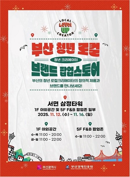부산시와 부산경제진흥원은 오는 12일부터 16일까지 5일간 서면 삼정타워에서 ‘2025 부산 청년 로컬 브랜드 팝업스토어’를 개최한다고 밝혔다. 이번 행사는 ‘청년 로컬크리에이터 레벨업 사업’의 일환으로, 부산을 기반으로 활동하는 로컬크리에이터와 시민이 직접 소통할 수 있는 체험형 행사다.