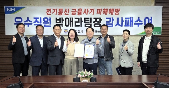 진해농협은 지난 11일 본점 소회의실에서 진해경찰서로부터 보이스피싱 예방 우수직원 표창장을 받았다고 12일 밝혔다.