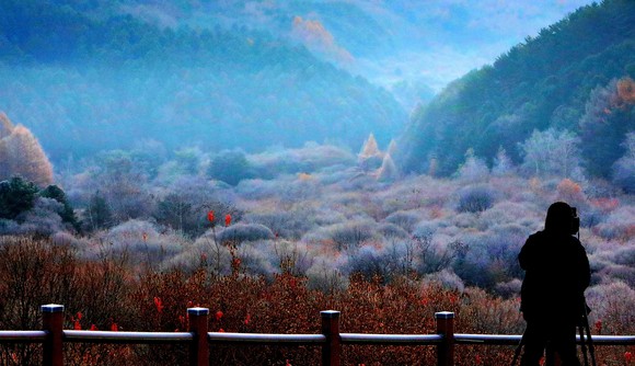 [포토] 인제 시크릿가든 새벽 서리가 자아낸 풍경 '신비'