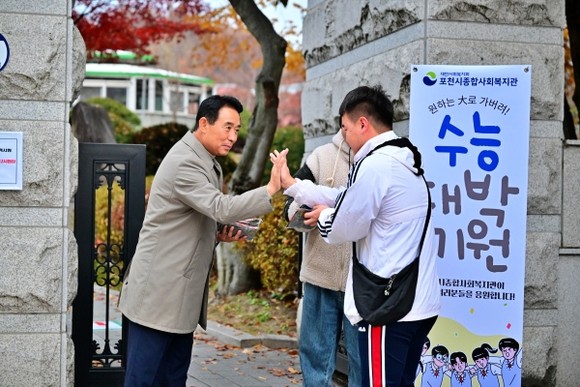 2026학년도 대학수학능력시험이 치러진 13일 아침 백영현 포천시장이 관내 시험장인 동남고등학교를 찾아 수험생들을 격려했다.