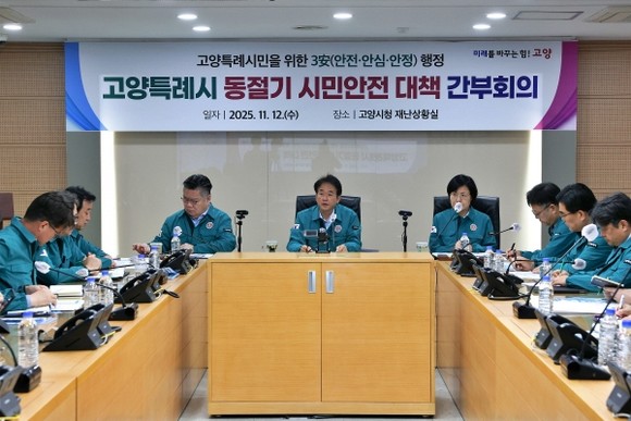 이동환 고양특례시장은 지난 12일, 시청 재난상황실에서 간부회의를 열어 동절기 시민안전 종합대책을 확인했다. 회의에서는 폭설 대응과 공사 현장 관리, 취약계층 보호 등 분야별 준비상황이 공유됐다.