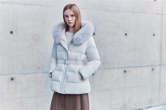 대표 상품 '클래식 폭스퍼 벨티드 패딩점퍼'는 은은한 광택감이 돋보이는 소재에 허리 절개선과 벨트 디테일을 적용했다. 엉덩이 라인을 덮는 기장감이며, 모자(후드)엔 폭스퍼를 적용했다.